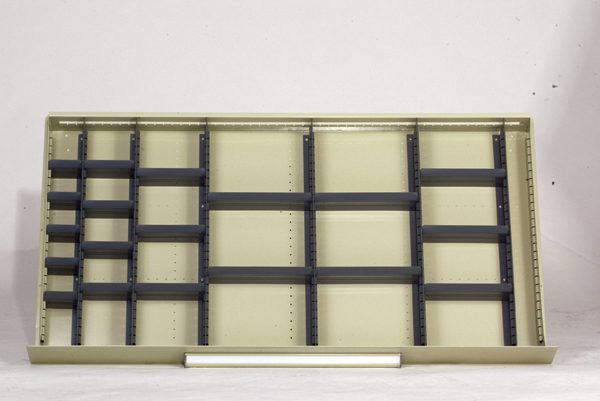 Divider Kit — V Grip Drawer Divider Kits – when selecting divider kits select the proper kit based on drawer height, depth of divider kit you desire, and drawer width (36″ or 48″) – each configuration of dividers has a letter attached to its specific designMod Drawers Divider Set For Drawer height: 6″ and up; 48″ wide; 24″ deep