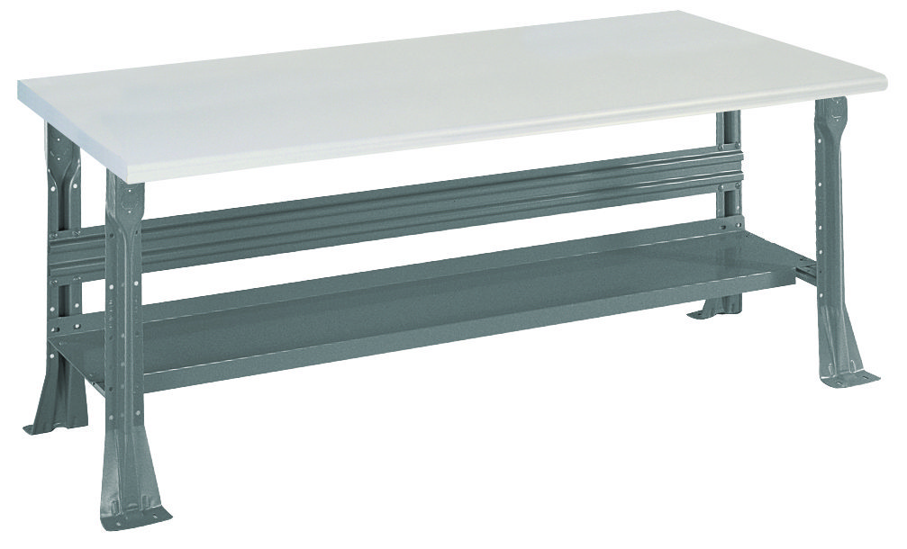 open 4 legged bench w/ lower shelf — Open Leg Bench w/Shelf – 5’with Conductive TopOpen Leg Bench