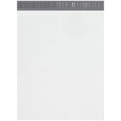 The plain white envelope, similar to MH-USA 19 x 24 Poly Mailers with Tear Strip (250/Case), has a grey sealing strip at the top. Its smooth, unmarked surface implies it is unused.