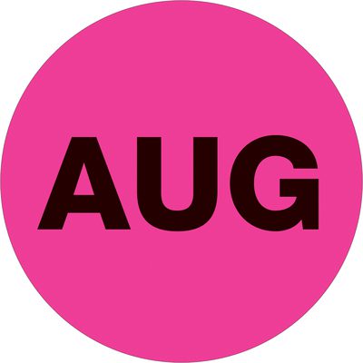 MH-USA 2″ Circle – “AUG” (Fluorescent Pink) Months of the Year Labels (500/Roll)