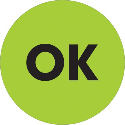 MH-USA 2″ Circle – “OK” Fluorescent Green Labels (500/Roll)