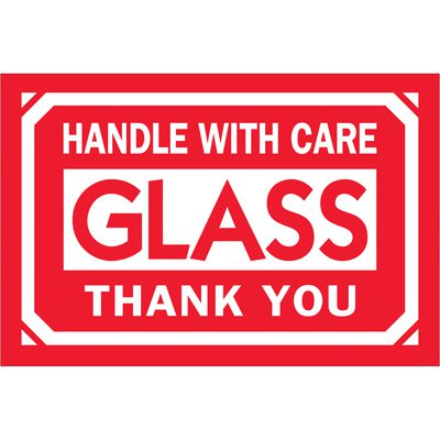 MH-USA 2 x 3″ – “Glass – Handle With Care – Thank You” Labels (500/Roll)