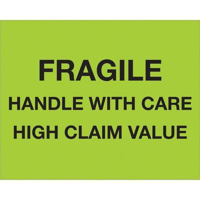 MH-USA 8 x 10″ – “Fragile Handle With Care – High Claim Value” (Fluorescent Green) Labels (250/Roll)