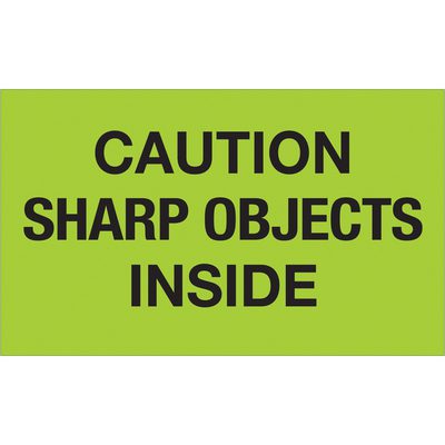 MH-USA 3 x 5″ – “Caution Sharp Objects Inside” (Fluorescent Green) Labels (500/Roll)