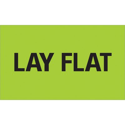 A vibrant fluorescent green rectangle displays the text LAY FLAT in black, like MH-USAs 3 x 5 labels, packaged with 500/roll.