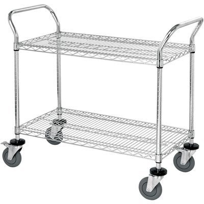 Includes four swivel casters (two with brakes), wire shelves, two u-handles and four donut bumpers.
