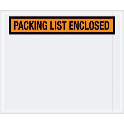 Pressure sensitive packing list envelopes secure and protect documents that are attached to the outside of shipments. Panel face, colored Packing List Envelopes are pre-printed with “Packing List Enclosed” on heavy 2 Mil poly.