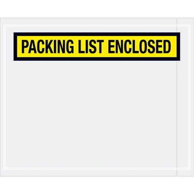 Pressure sensitive packing list envelopes secure and protect documents that are attached to the outside of shipments. Panel face, colored Packing List Envelopes are pre-printed with “Packing List Enclosed” on heavy 2 Mil poly.