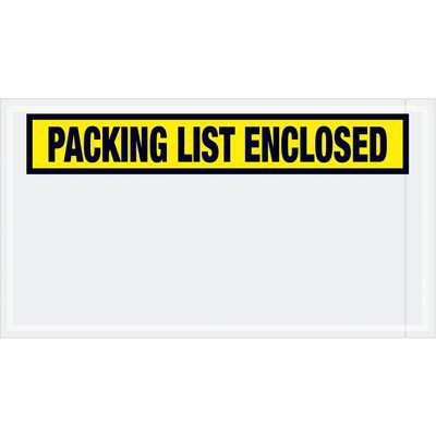 Pressure sensitive packing list envelopes secure and protect documents that are attached to the outside of shipments. Panel face, colored Packing List Envelopes are pre-printed with “Packing List Enclosed” on heavy 2 Mil poly.