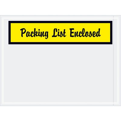Pressure sensitive packing list envelopes secure and protect documents that are attached to the outside of shipments. Panel face, colored Packing List Envelopes are pre-printed with “Packing List Enclosed” in script font on heavy 2 Mil poly.