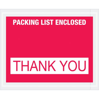 MH-USA 4 1/2 x 5 1/2″ Red “Packing List Enclosed – Thank You” Envelopes (1000/Case)