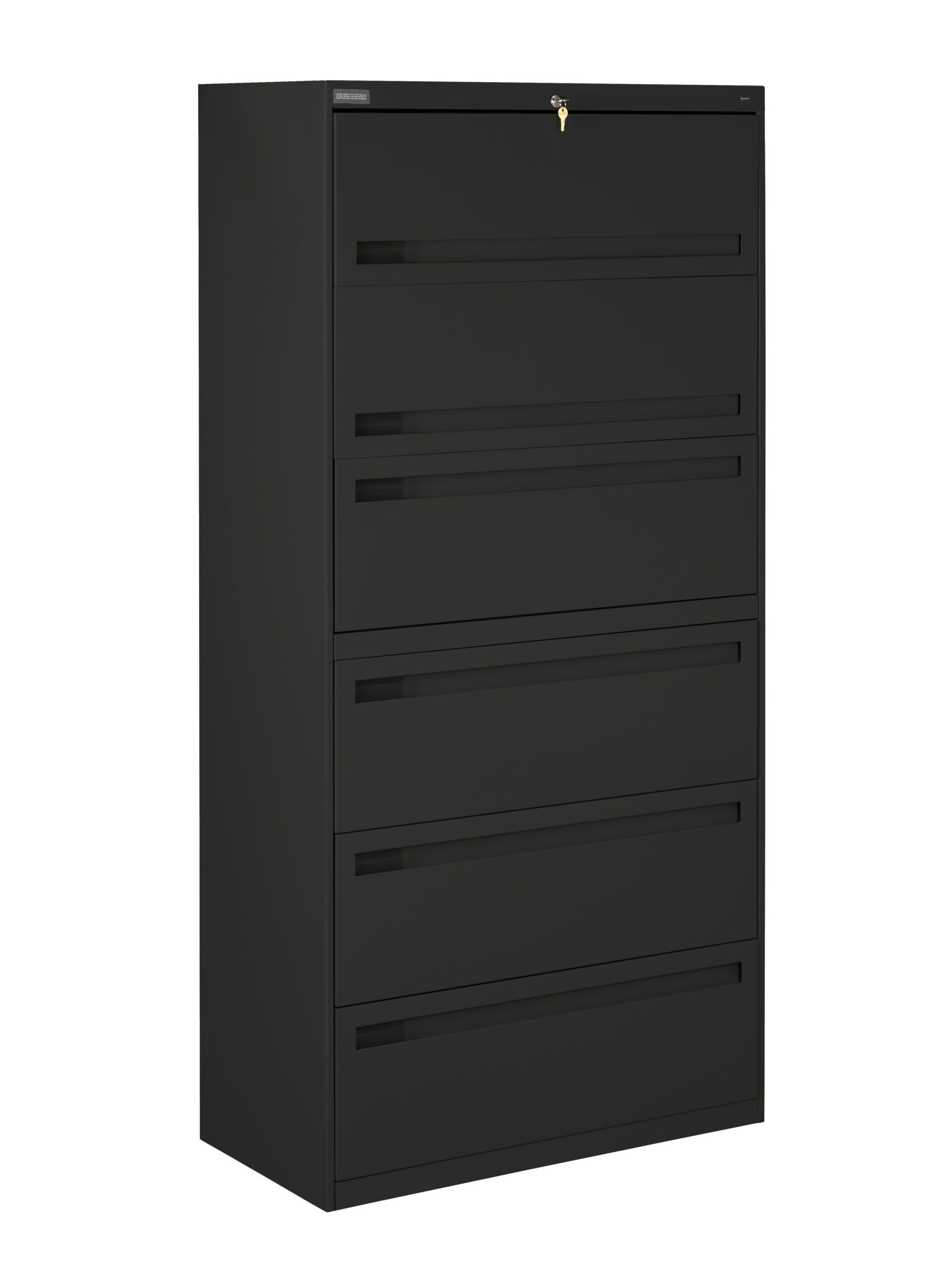 Tennsco 36″ Wide Six-Drawer Lateral File with Retractable Doors and Fixed Drawer Fronts, Black