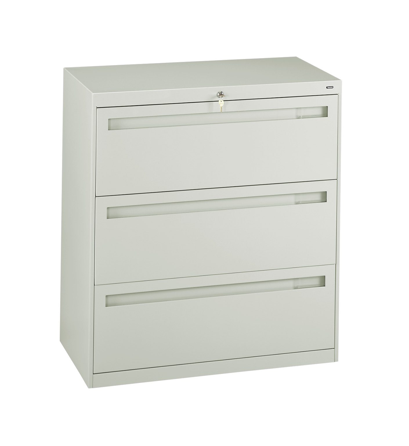 Tennsco 36″ Wide Three-Drawer Lateral File with Fixed Drawer Fronts, Light Grey