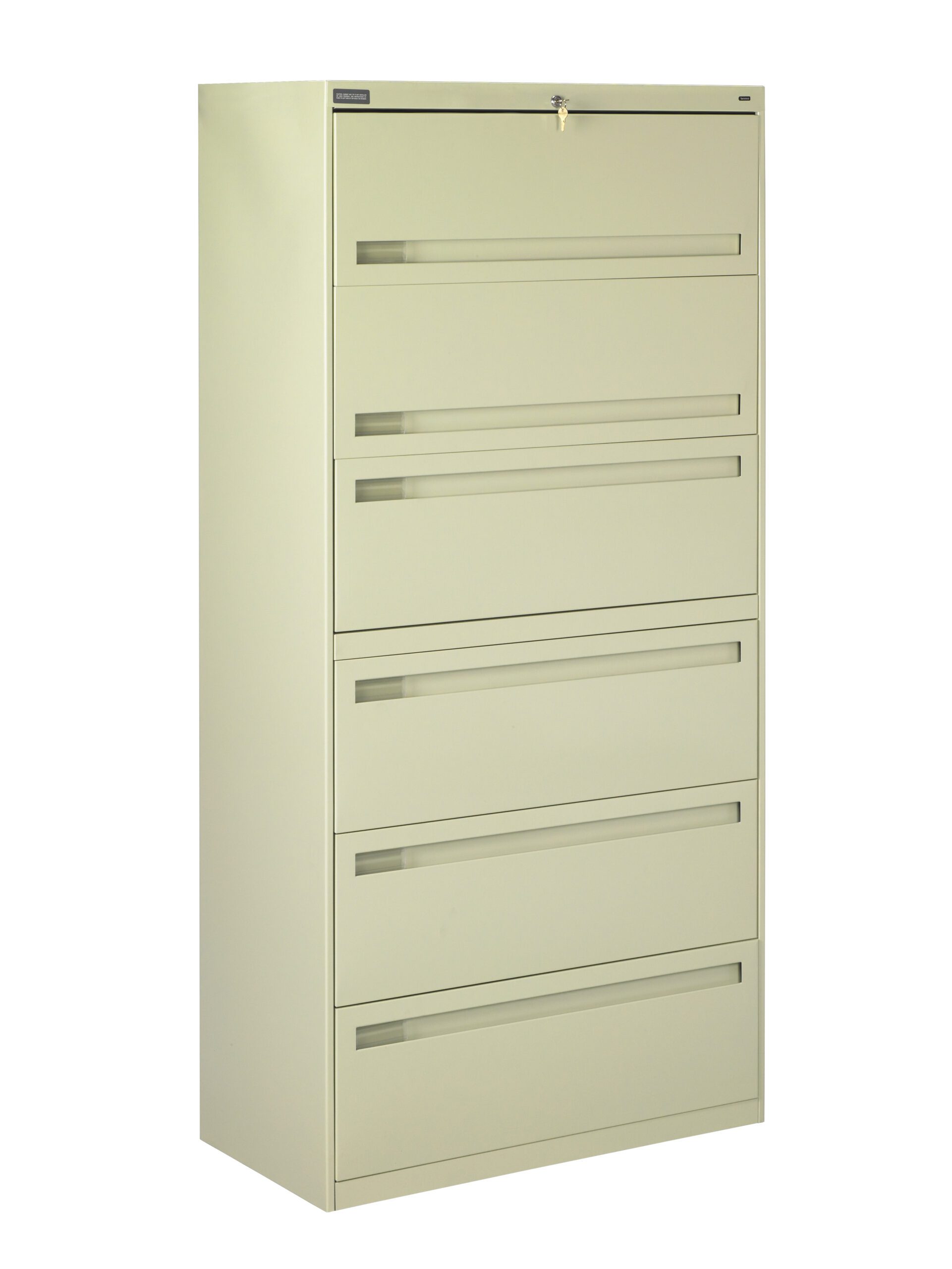 Tennsco 42″ Wide Six-Drawer Lateral File with Retractable Doors and Fixed Drawer Fronts, Champagne/Putty
