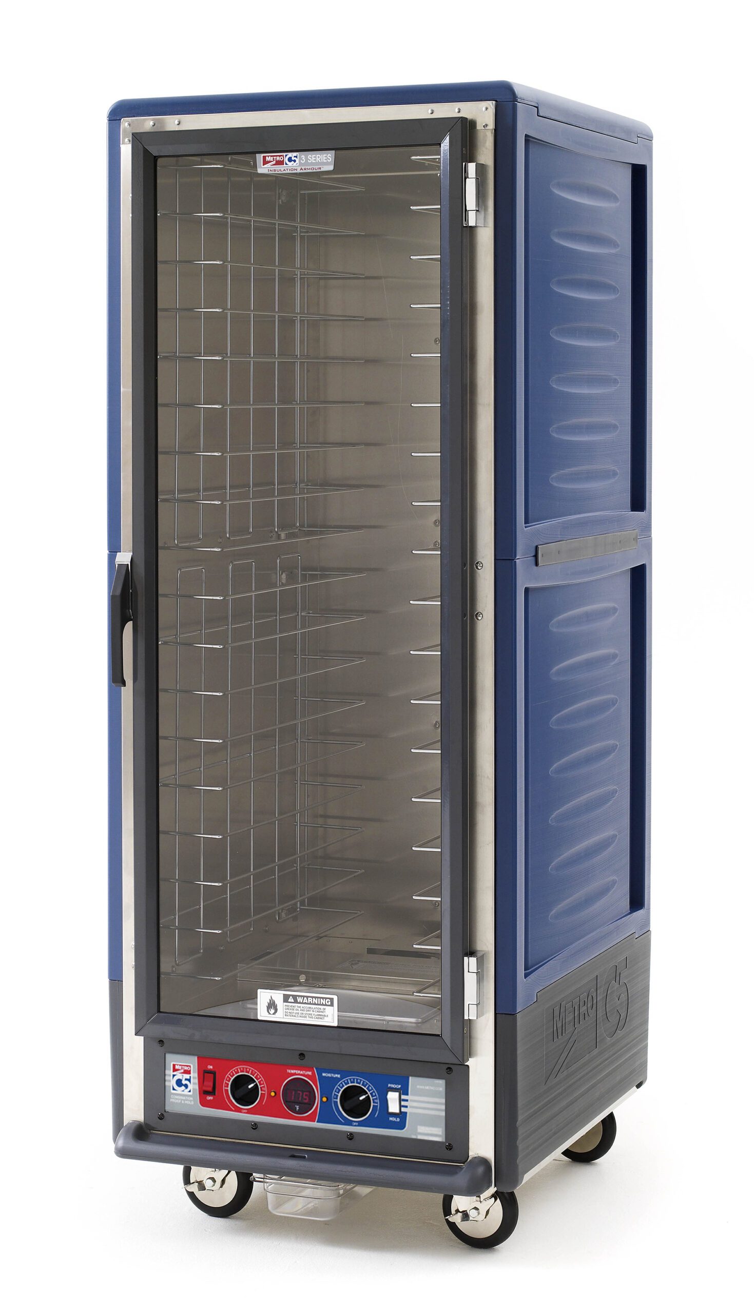 Metro C539-CLFC-4-BU C5 3 Series Insulated Holding/Proofing Cabinet, Full Height, Full Length Clear Door, Fixed Wire Slides, 120V, 60Hz, 1440W, Blue