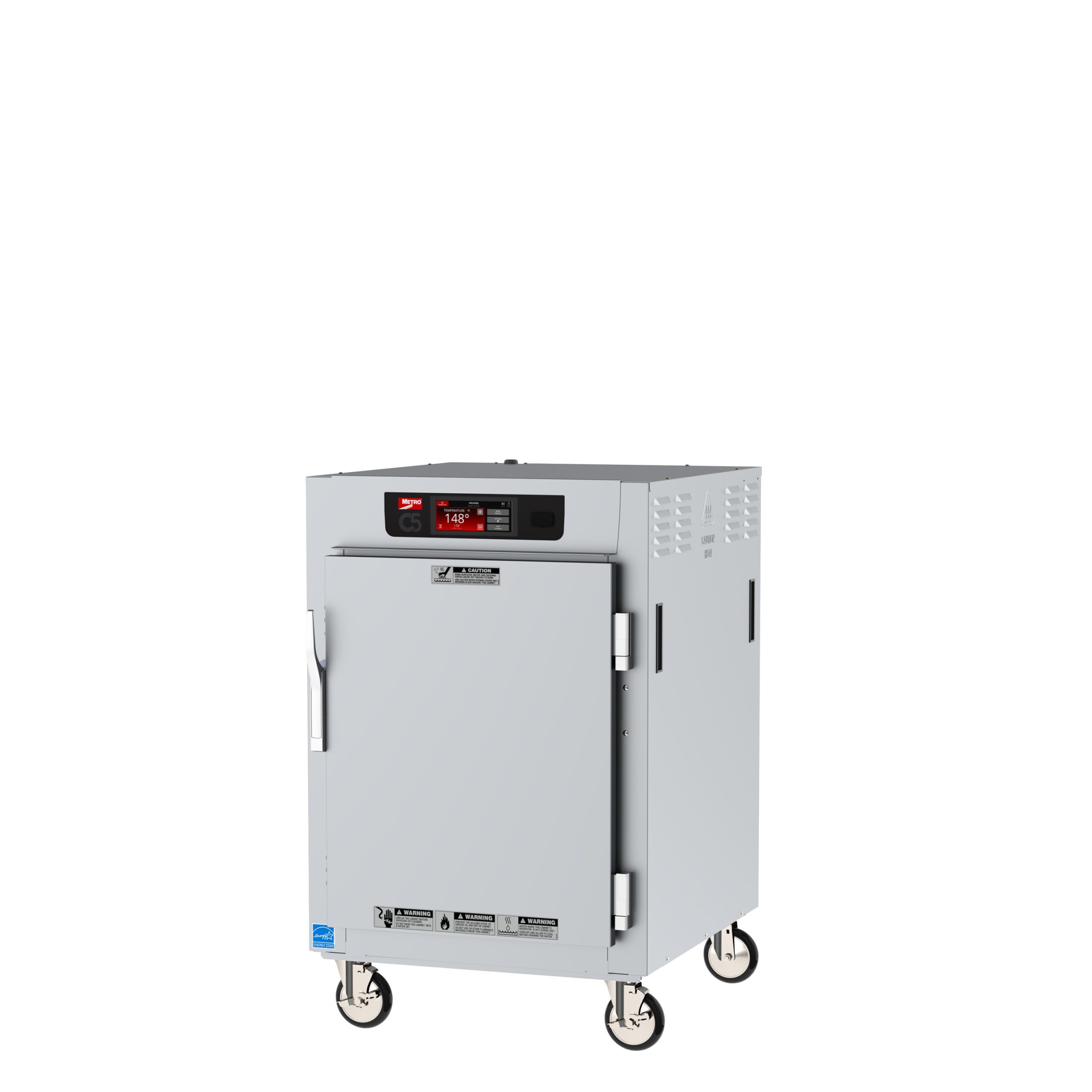 Introducing the Metro C5 8 Series Heated Holding Cabinets, engineered for superior temperature control and food quality enhancement. Featuring a sleek 6.8” high-resolution touch-screen, this cabinet allows for intuitive touch-screen management with menu presets and programmable timers for unmatched consistency. Its gentle, natural convective airflow ensures even heating, while the robust stainless steel construction coupled with 2.5″ thick fiberglass insulation minimizes heat loss.