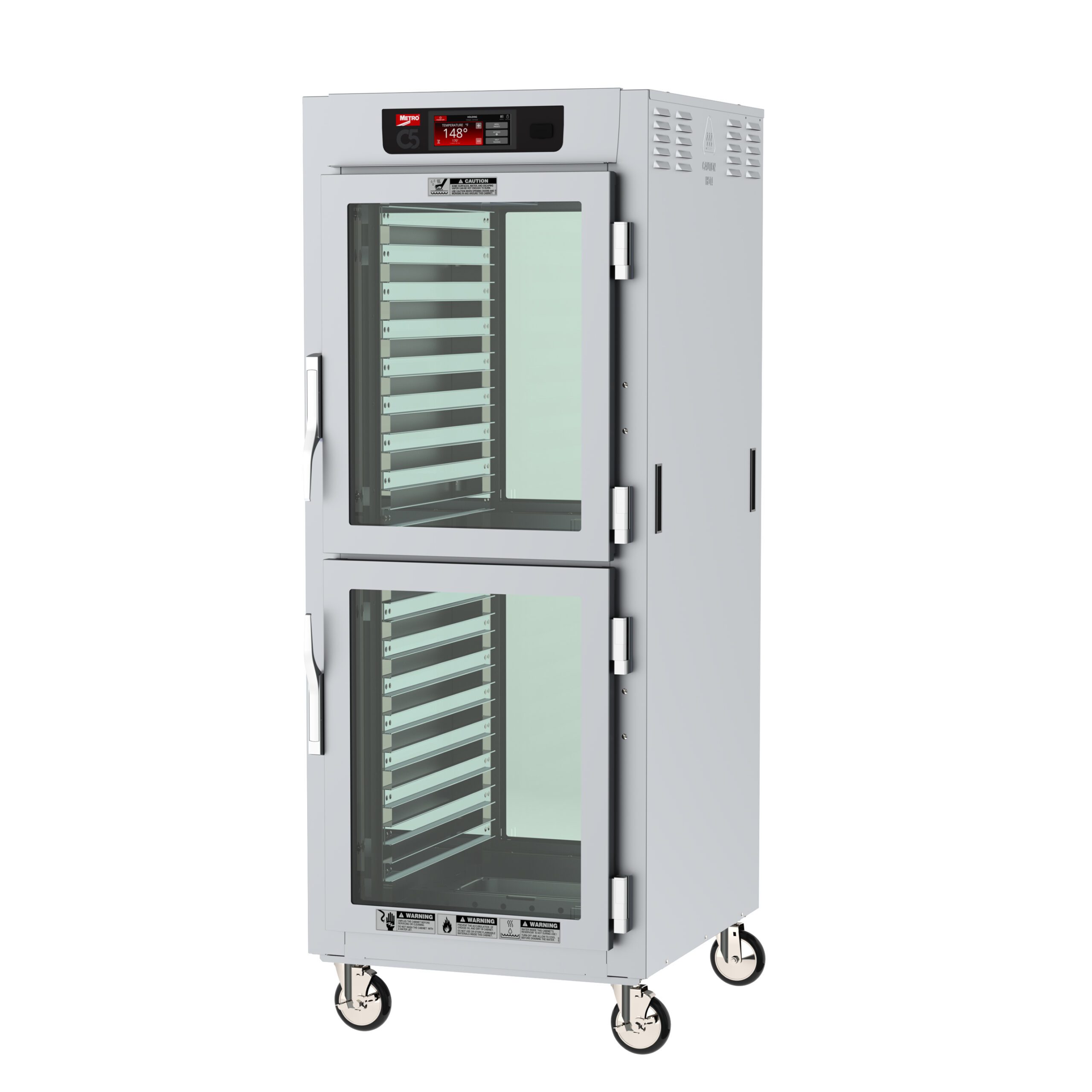 - Lip Load Aluminum Slides: Ensures smooth and secure handling of food pans.