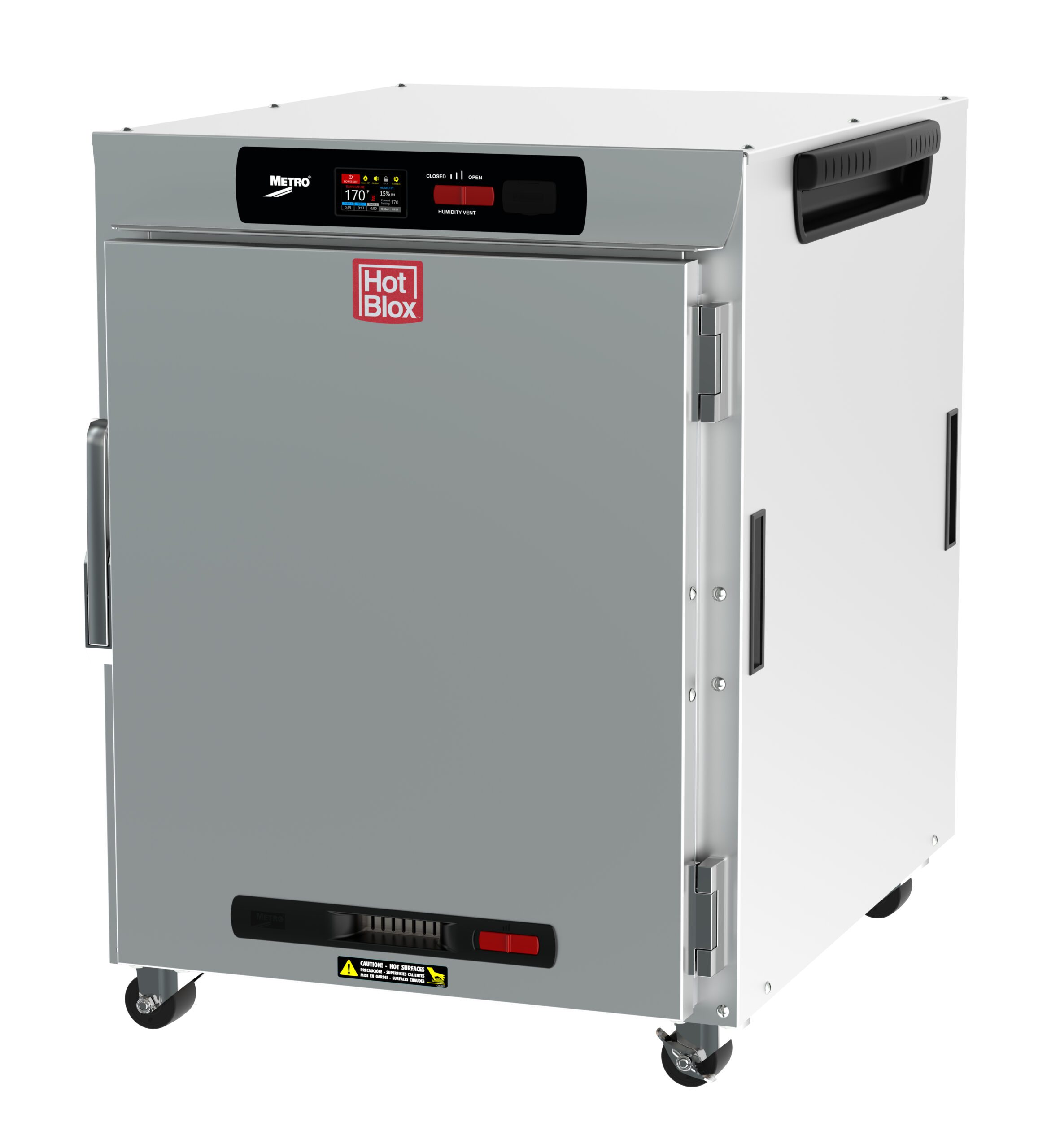 A: The Metro HotBlox cabinet can hold both moist and crispy foods simultaneously, thanks to its hybrid convection-radiant heating system.
