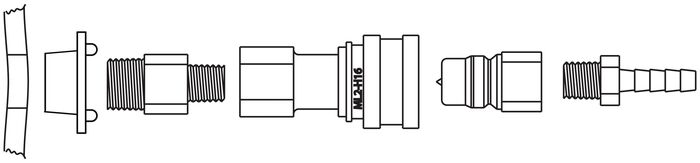 Fitting Disconnect Assembly, Stainless Steel, with Viton for 1/4″ ID Tube, installed.