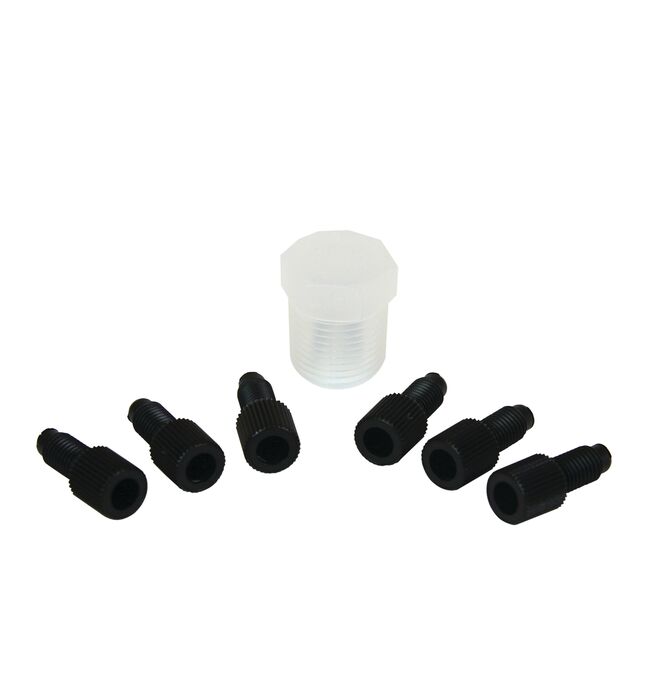 Replacement Poly Plug Cap Kit for HPLC Poly (PTFE) Manifold, six 1/4-28 caps & one 3/8″ NPT cap.