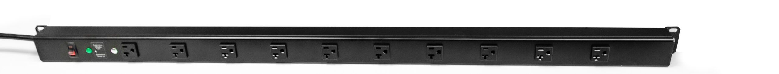 M48 power rail with 10 outlets, 42.3″L, vertical upright mounting bracket included, 10ft power cord.