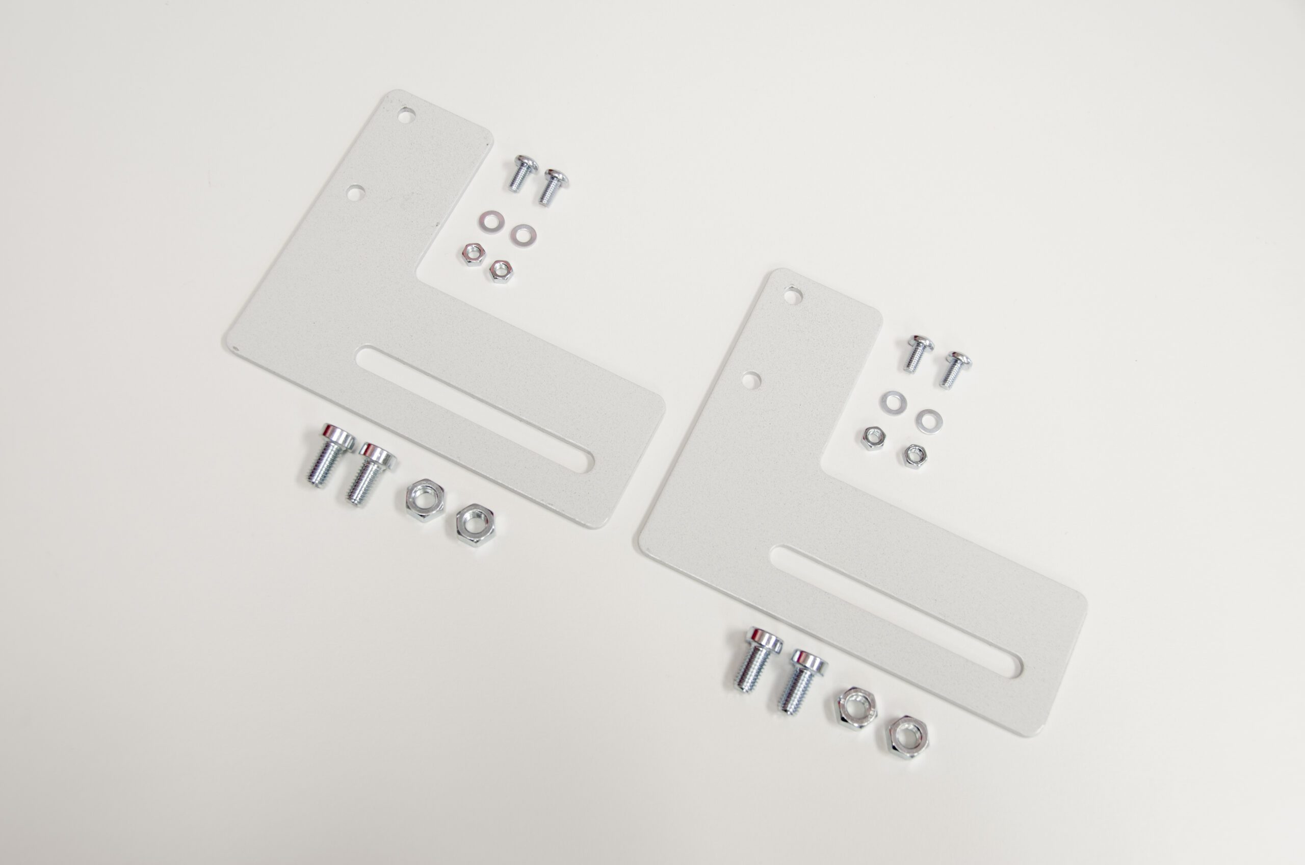 Power rail mounting brackets for mounting power rails to bench frame rear case. Can be mounted above or below the rear case on Treston Cornerstone or Concept workstations.