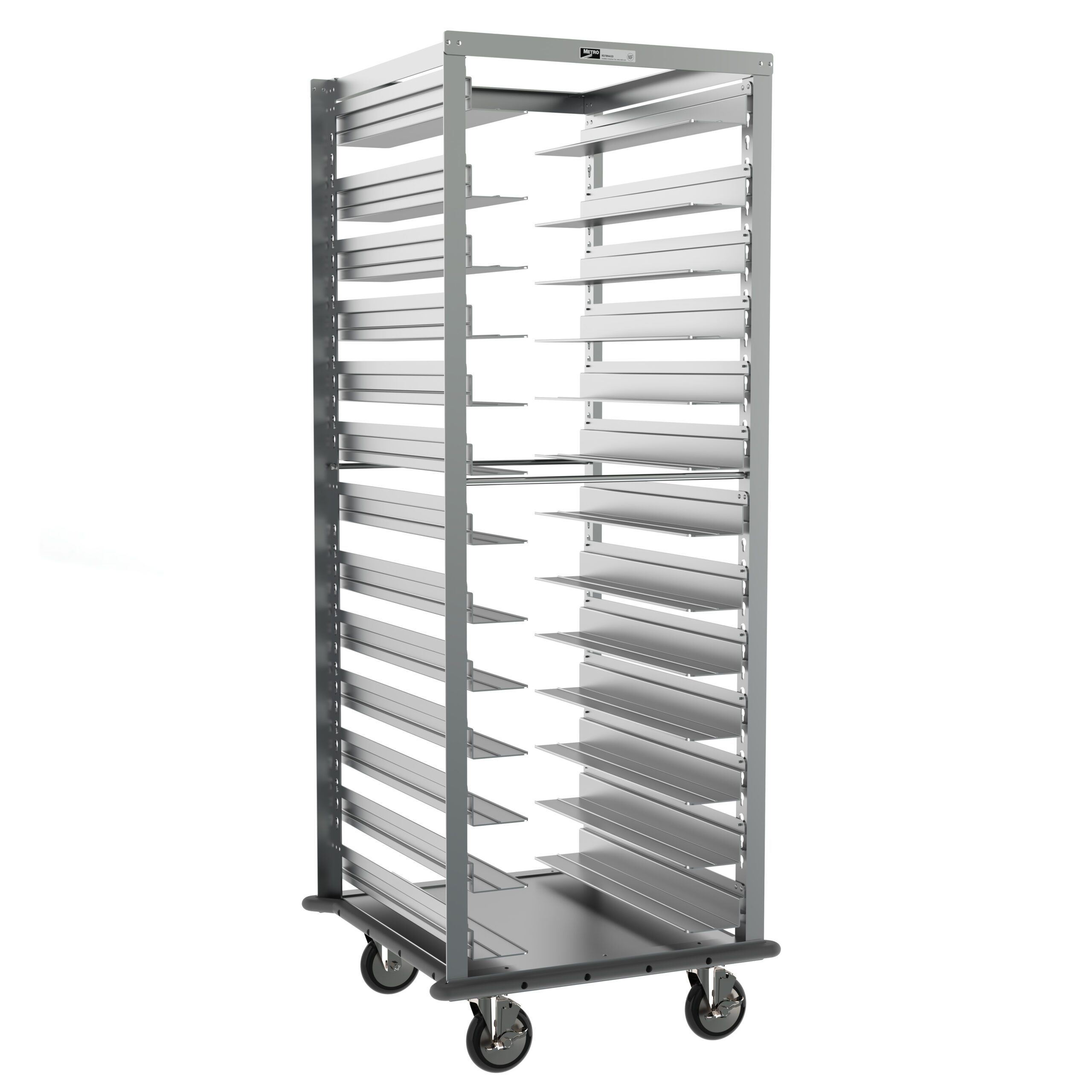 - Adjustable Slides: Equipped with 13 sets of “Vari-Slides,” this rack accommodates all popular modules used in the foodservice industry, allowing you to store a variety of pan sizes and configurations.