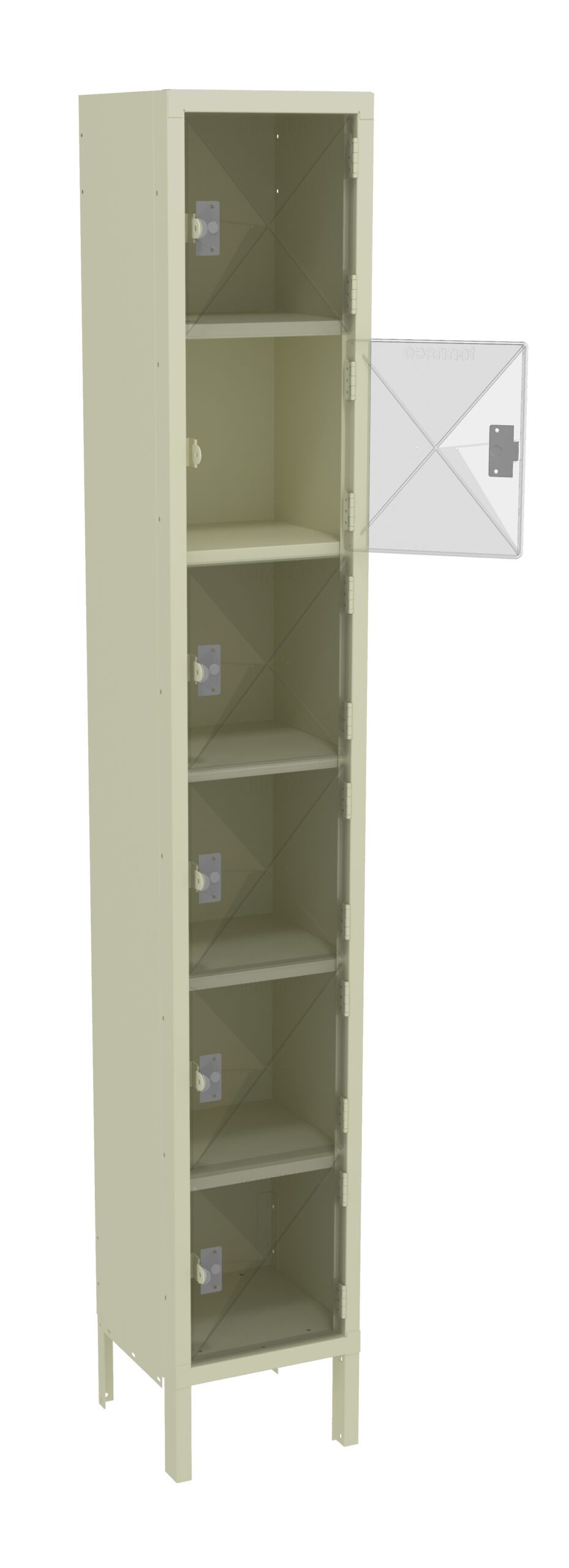 Tennsco 12″ W x 12″ D One-Wide Assembled Six-Tier C-Thru Box Locker with Legs, Champagne/Putty