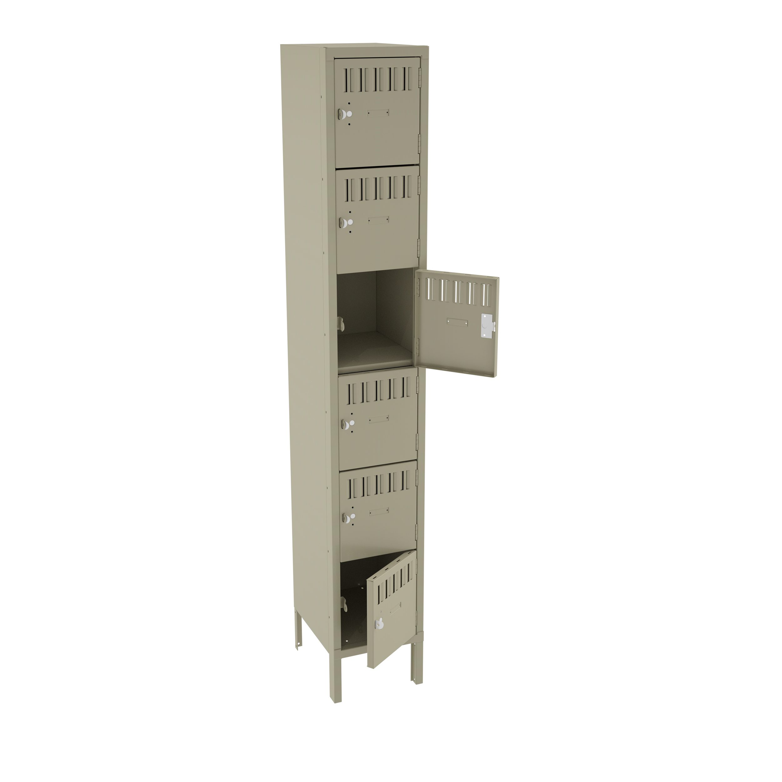Tennsco 12″ W x 18″D One-Wide Assembled Six-Tier Box Locker with Legs, Sand