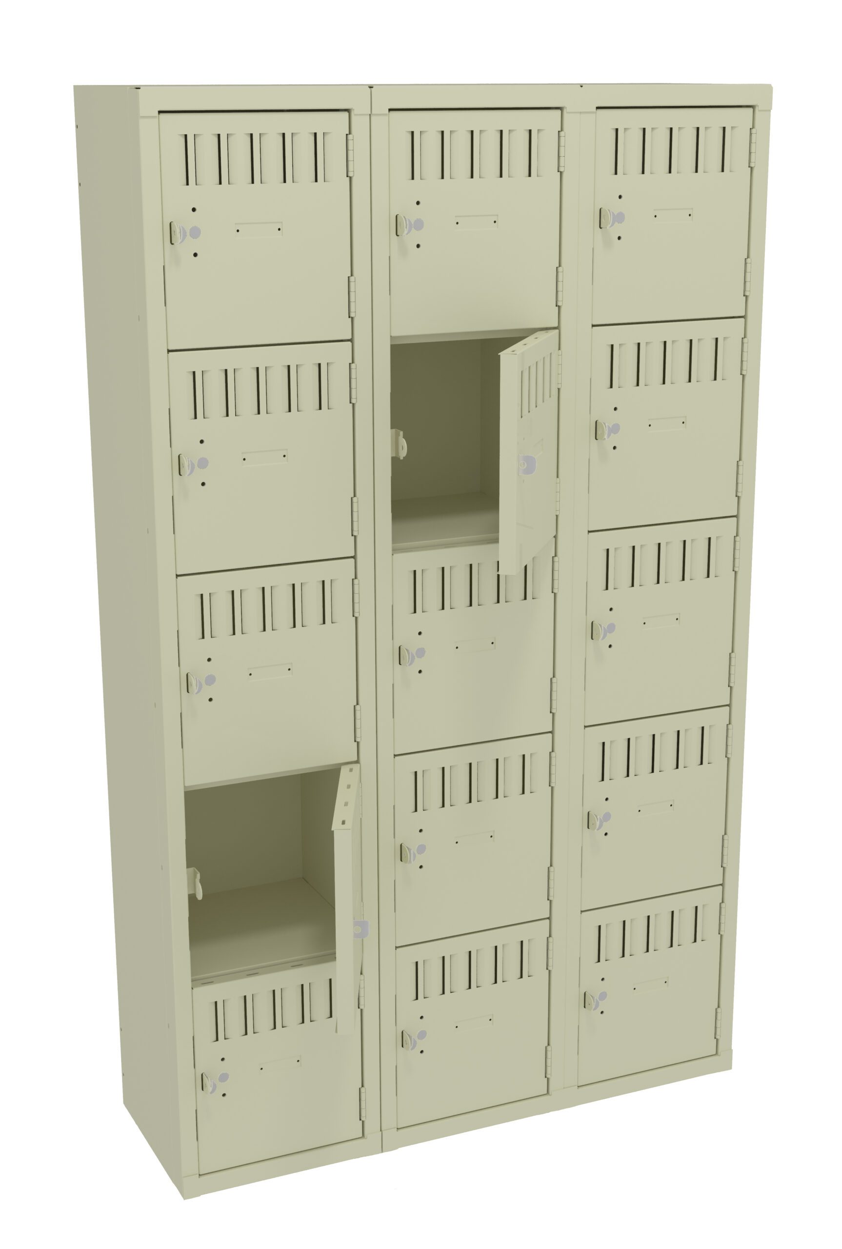 Tennsco 36″ W x 12″D Three-Wide Assembled Five-Tier Box Locker without Legs, Champagne/Putty