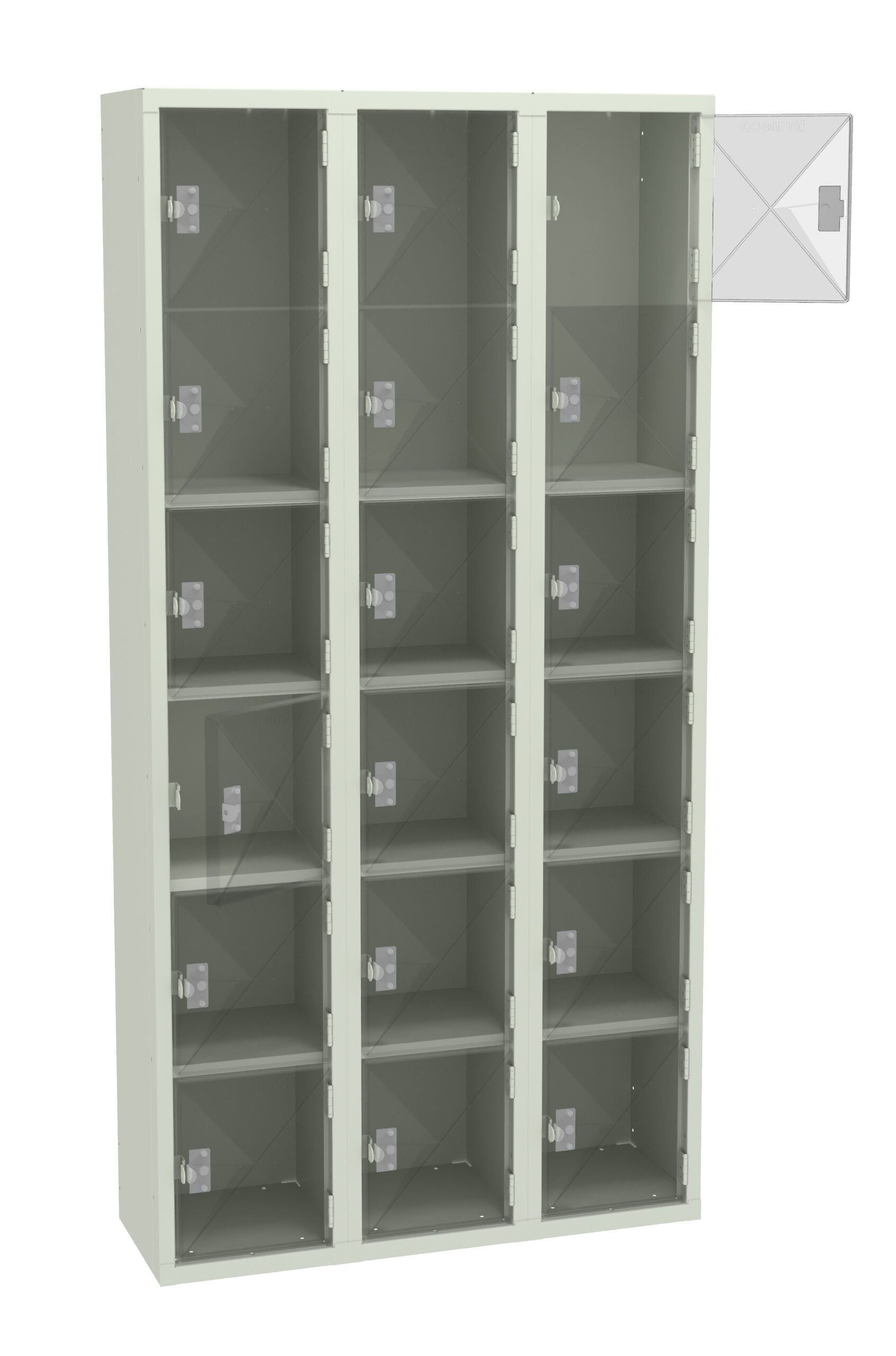 Tennsco Box Lockers are ideal for securely storing smaller items like purses, lunches, books, and athletic gear. Clear yet strong acrylic doors offer visibility of locker contents for security reasons. Secure acrylic door panels are positioned in steel channels and riveted to maintain the door’s integrity. Welded door frame is constructed of 16-gauge steel for added rigidity. Steel locking bar offers strength, while spring actuated latches provide secure and quiet latch operation. Extra-strong five-knuckle hinge with secured pin offers added content protection and long-life.