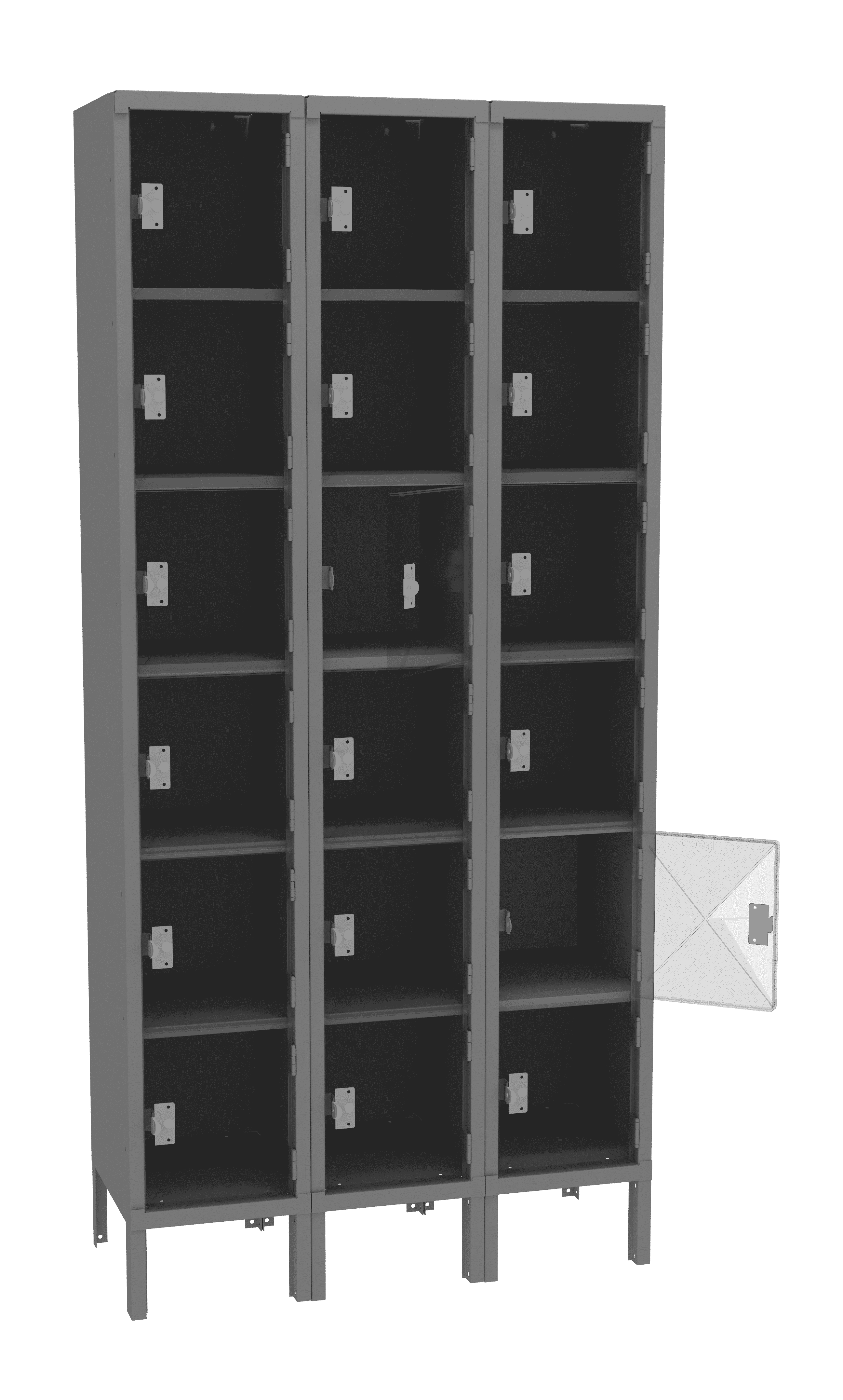 Tennsco 36″ W x 15″D Three-Wide Assembled Six-Tier C-Thru Box Locker with Legs, Medium Grey