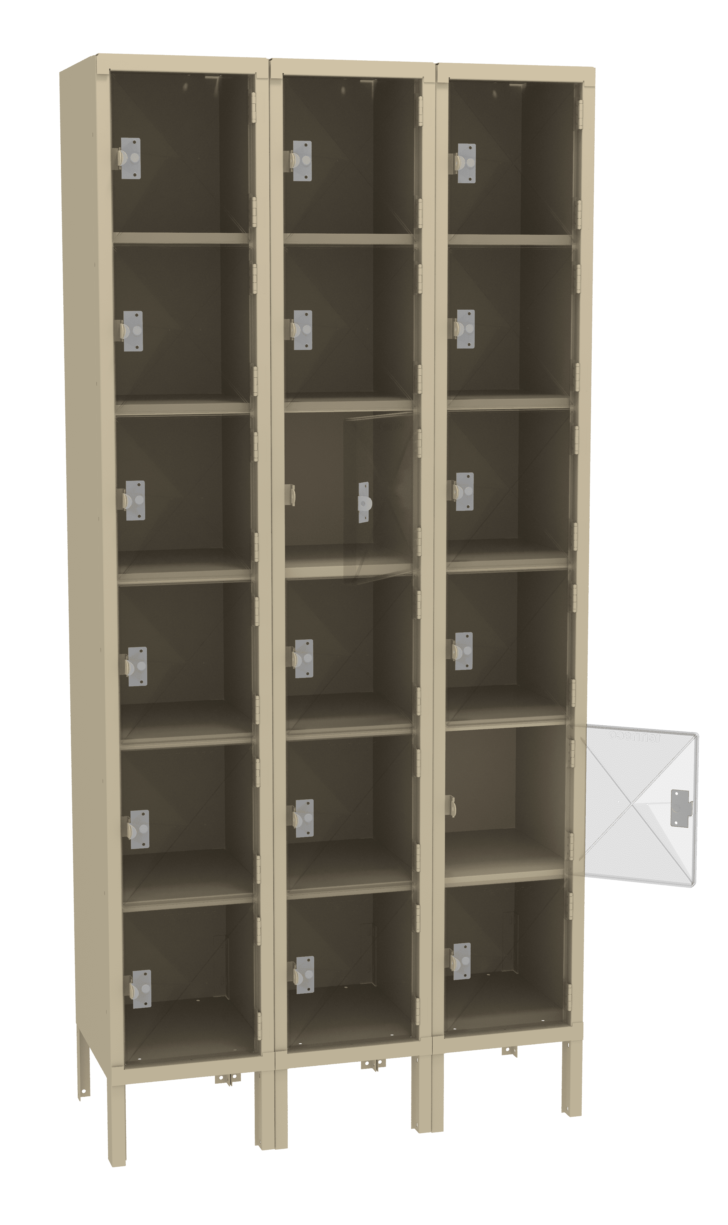 Tennsco 36″ W x 15″D Three-Wide Assembled Six-Tier C-Thru Box Locker with Legs, Sand