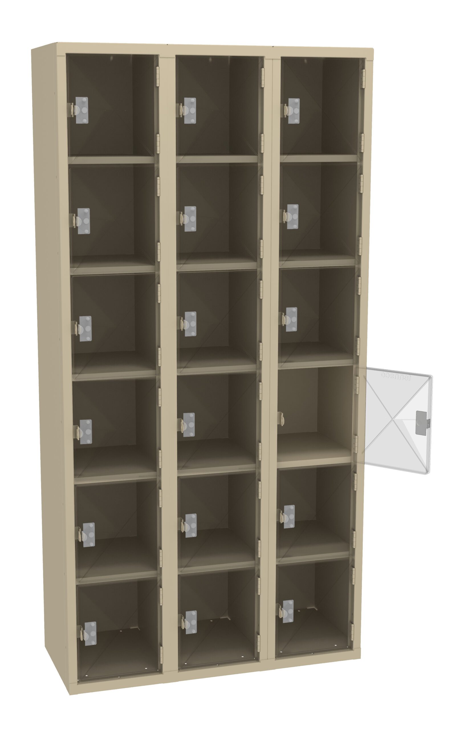 Tennsco 36″ W x 15″D Three-Wide Assembled Six-Tier C-Thru Box Locker Without Legs, Sand