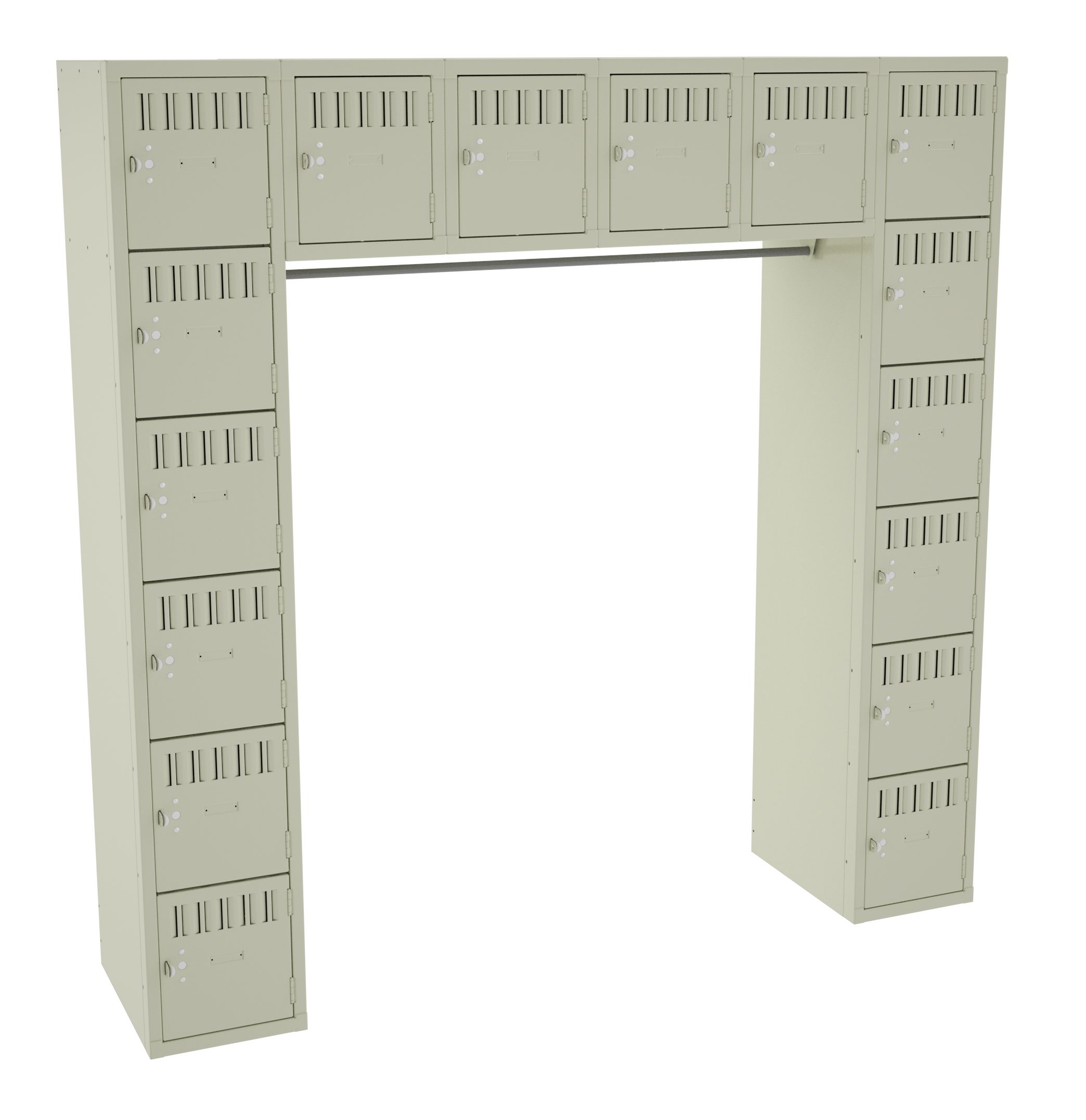 Get all the benefits of economical Box Lockers plus the advantage of hanging space for full length garments. Rugged padlock hasps for added security. Flush louvers for ventilation. Coat rod included – 47 7/8″.