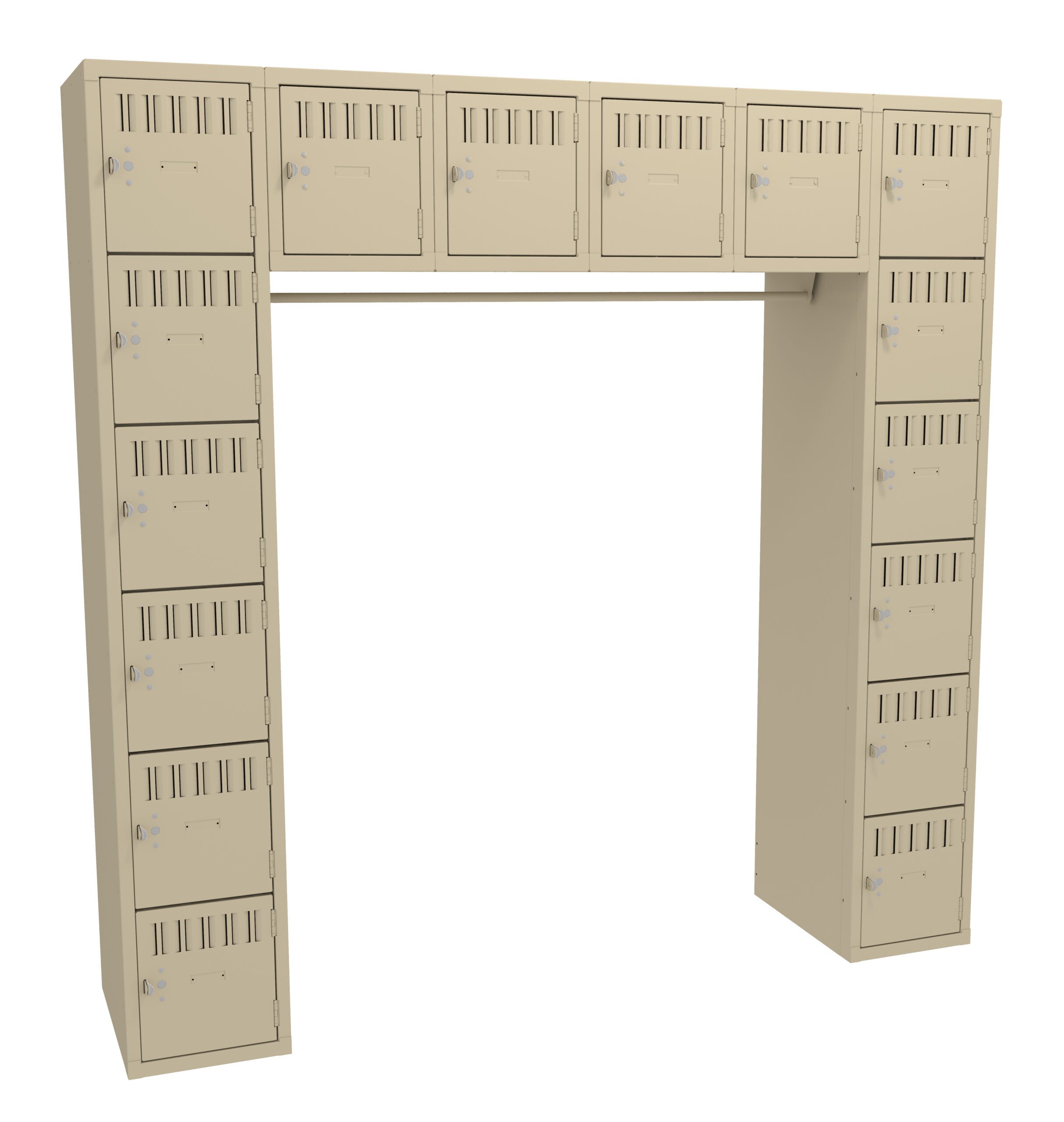 Get all the benefits of economical Box Lockers plus the advantage of hanging space for full length garments. Rugged padlock hasps for added security. Flush louvers for ventilation. Coat rod included – 47 7/8″.