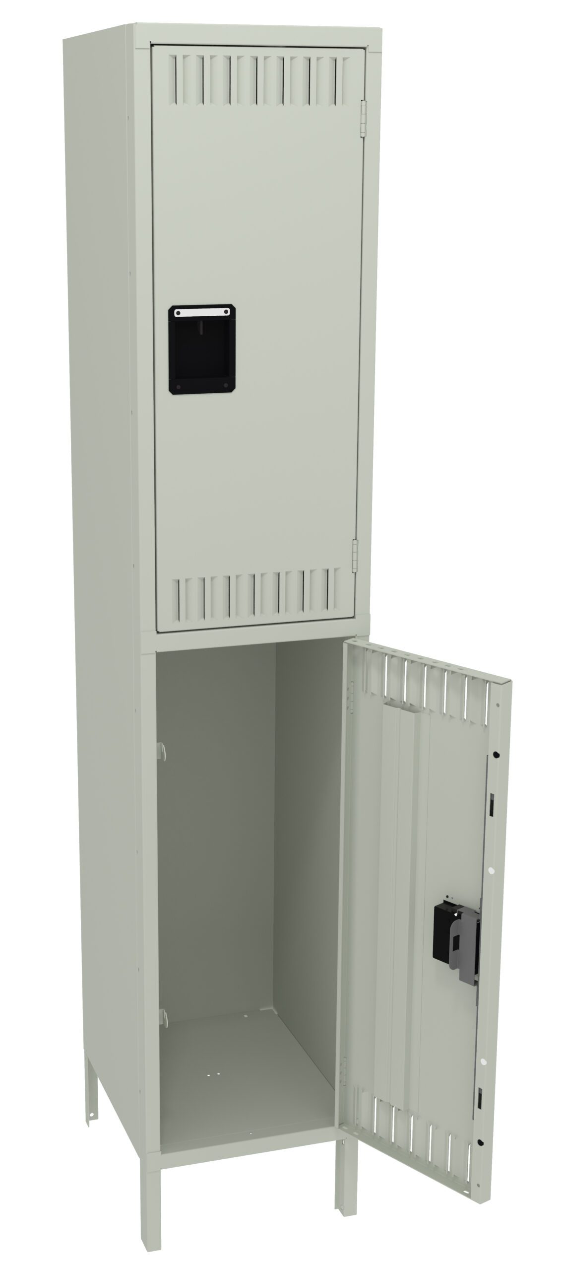 Tennsco 15″ W One-Wide Unassembled Double Tier Locker With Legs, Light Grey – TO-DTK-151836-1-LGY