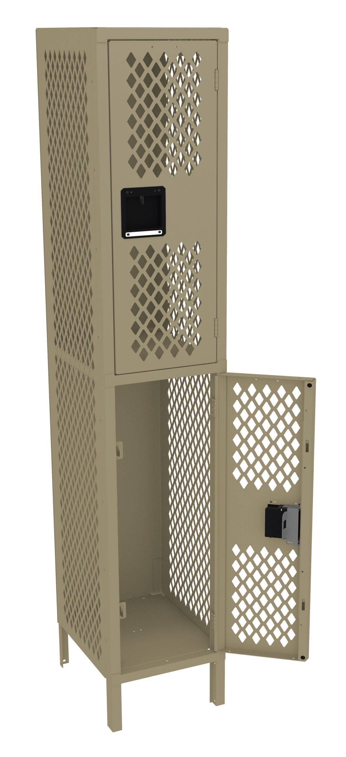 Tennsco 15″W One-Wide Double Tier Ventilated Locker with Legs, Sand