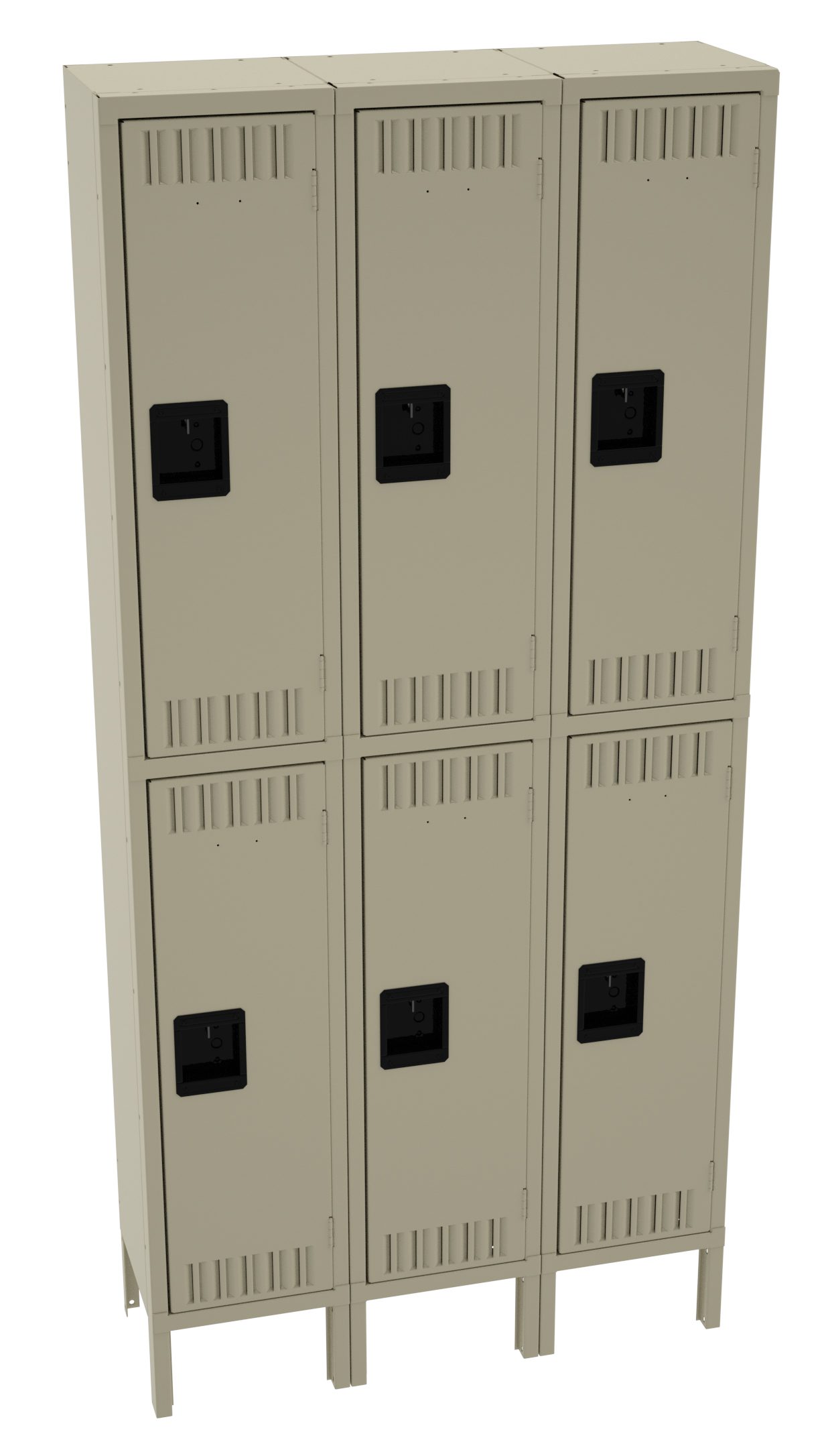 Tennsco 36″ W Three-Wide Assembled Double Tier Locker With Legs, Sand – TO-DTS-121236-3-SND