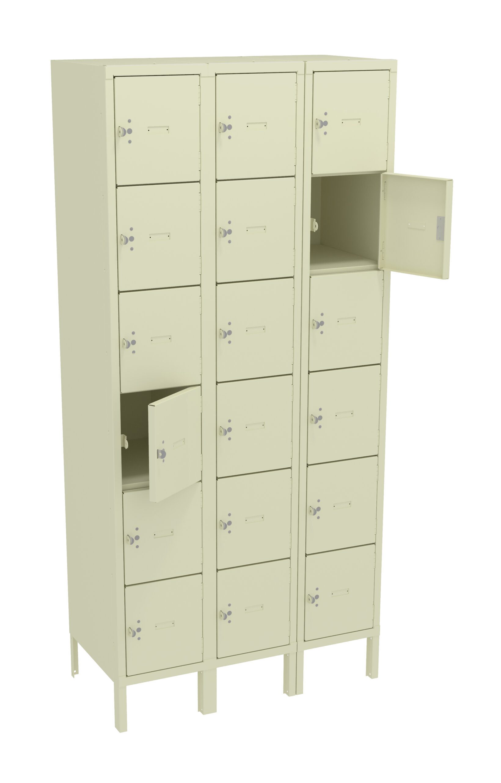 Tennsco 36″ W Three-Wide Assembled Heavy-Duty Six-Tier Box Locker with Legs, Champagne/Putty