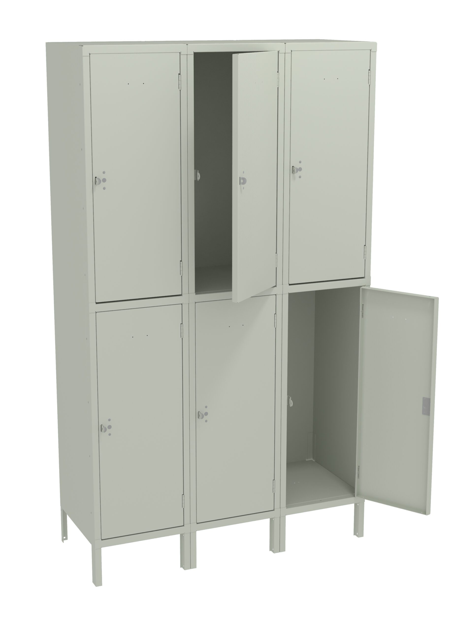 Tennsco 45″ W Three-Wide Assembled Heavy-Duty Double Tier Locker with Legs, Light Grey