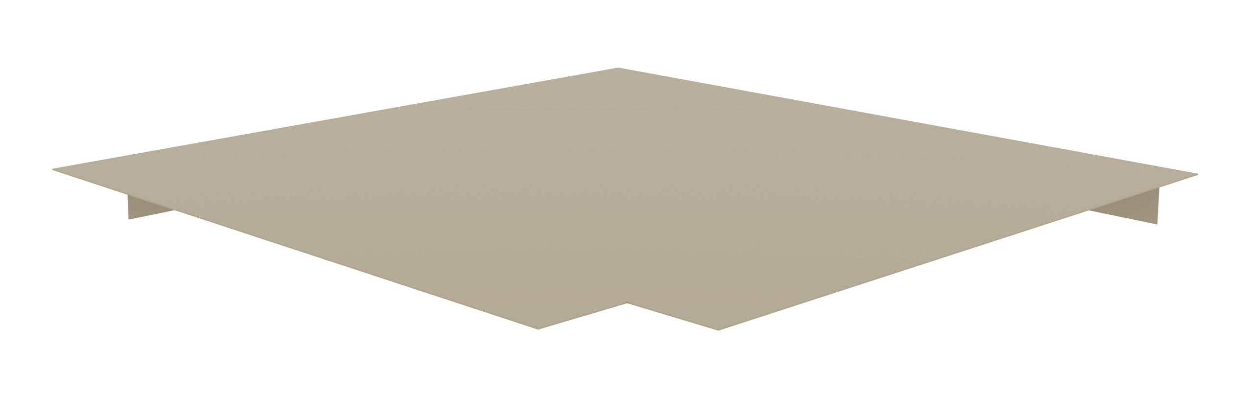 A beige, angular metal bracket with an L-shaped notch in the middle, featuring flanges on two sides, used for construction or assembly purposes.
