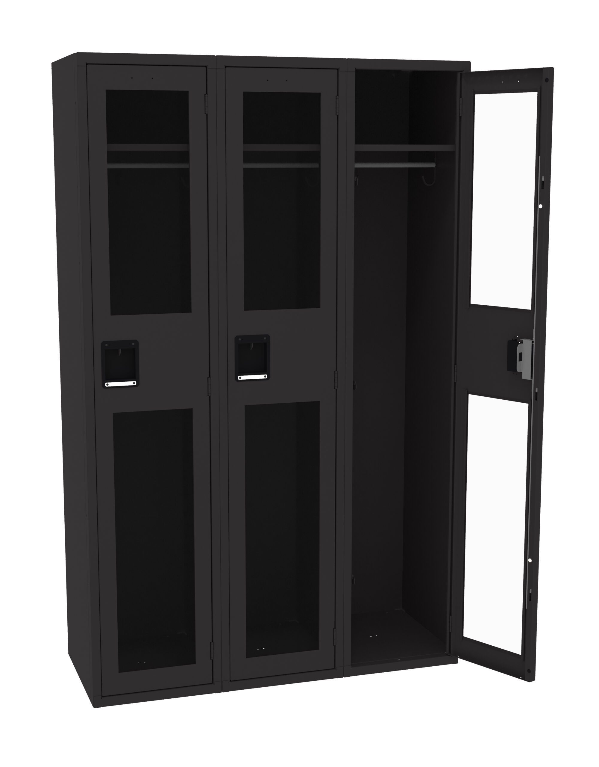 Single Tier Lockers are our most popular general purpose locker, ideal for factories, schools, hospitals. Clear yet strong acrylic doors offer visibility of locker contents for security reasons. Secure acrylic door panels are positioned in steel channels and riveted to maintain the door’s integrity. Welded door frame is constructed of 16-gauge steel for added rigidity. Steel locking bar offers strength, while spring actuated latches provide secure and quiet latch operation. Extra-strong five-knuckle hinge with secured pin offers added content protection and long-life.