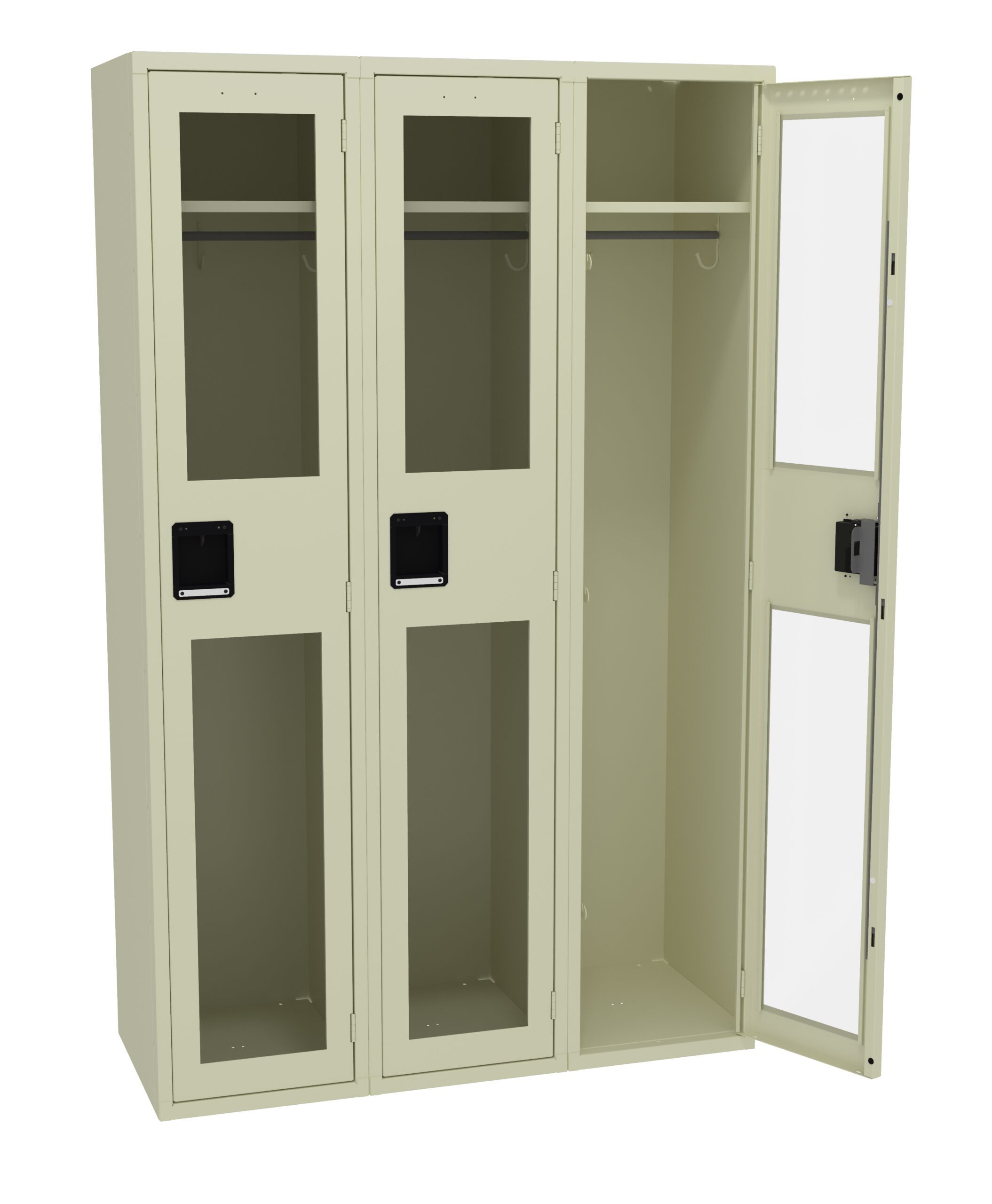 Single Tier Lockers are our most popular general purpose locker, ideal for factories, schools, hospitals. Clear yet strong acrylic doors offer visibility of locker contents for security reasons. Secure acrylic door panels are positioned in steel channels and riveted to maintain the door’s integrity. Welded door frame is constructed of 16-gauge steel for added rigidity. Steel locking bar offers strength, while spring actuated latches provide secure and quiet latch operation. Extra-strong five-knuckle hinge with secured pin offers added content protection and long-life.