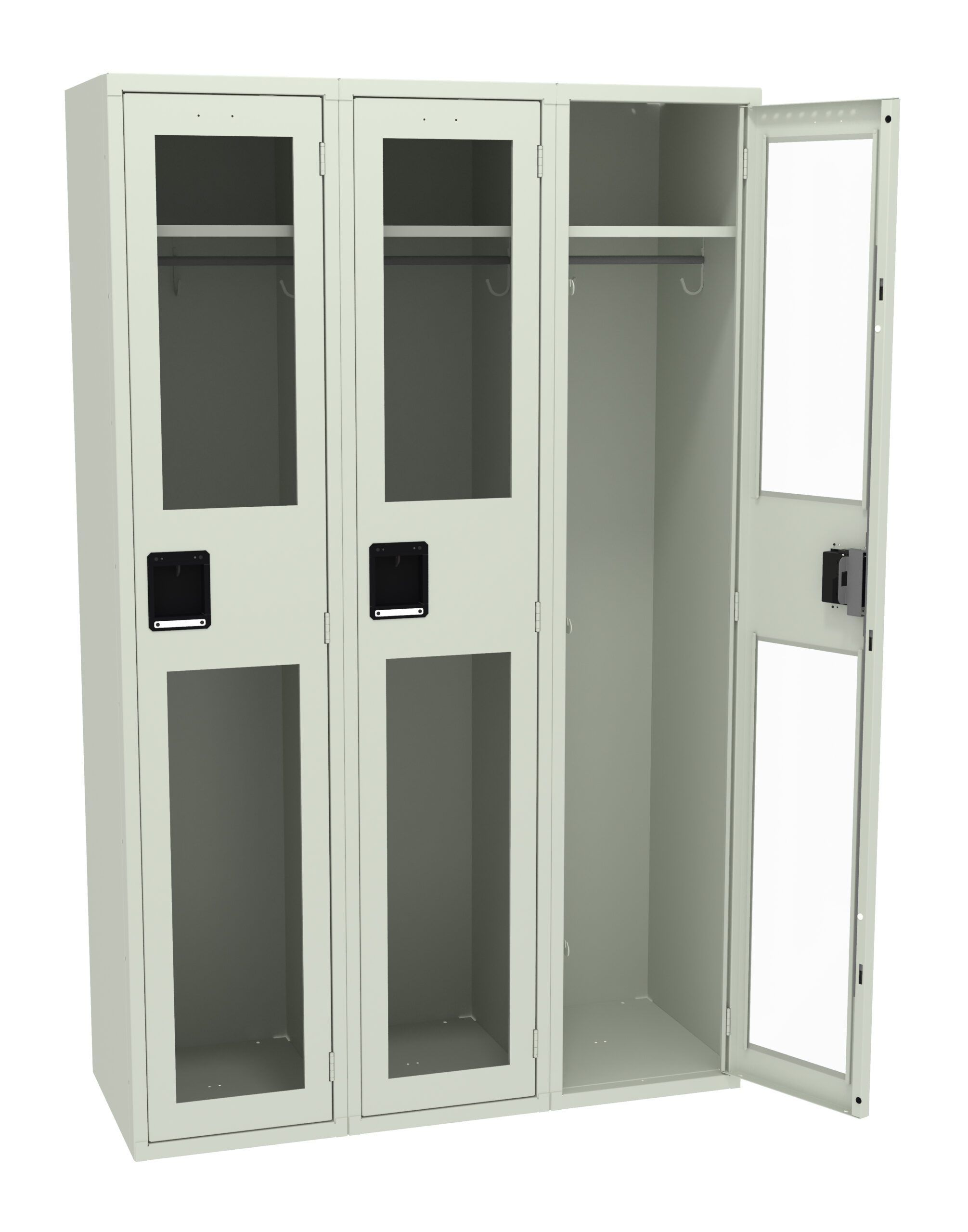Single Tier Lockers are our most popular general purpose locker, ideal for factories, schools, hospitals. Clear yet strong acrylic doors offer visibility of locker contents for security reasons. Secure acrylic door panels are positioned in steel channels and riveted to maintain the door’s integrity. Welded door frame is constructed of 16-gauge steel for added rigidity. Steel locking bar offers strength, while spring actuated latches provide secure and quiet latch operation. Extra-strong five-knuckle hinge with secured pin offers added content protection and long-life.
