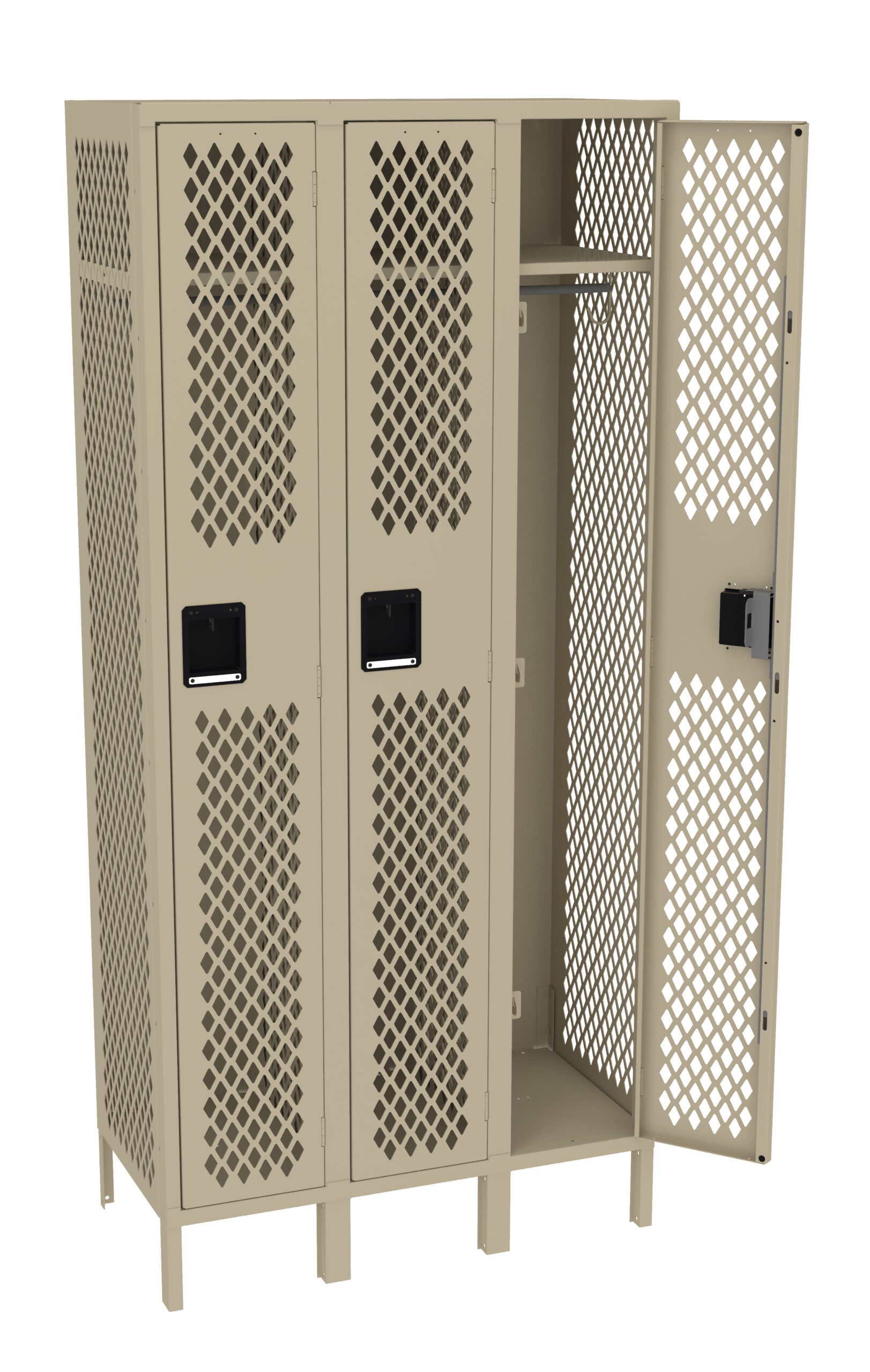 Tennsco 12″W Three-Wide Single Tier Ventilated Locker with Legs, Sand