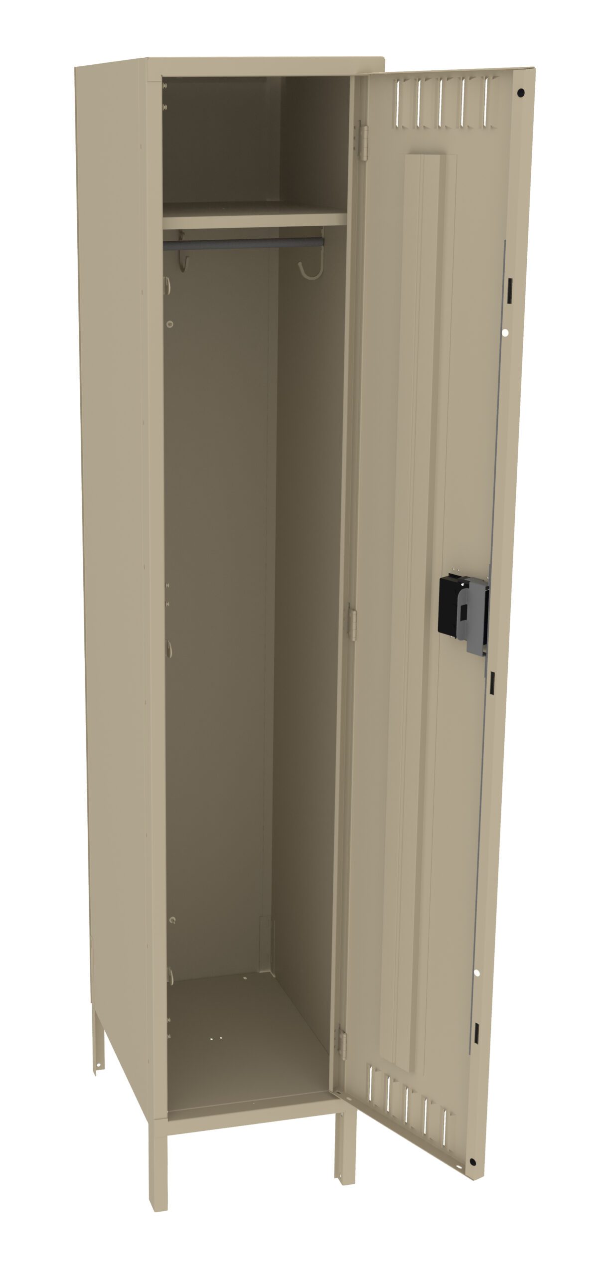 Tennsco 15″ W One-Wide Assembled Single Tier Locker With Legs, Sand – TO-STS-152172-1-SND