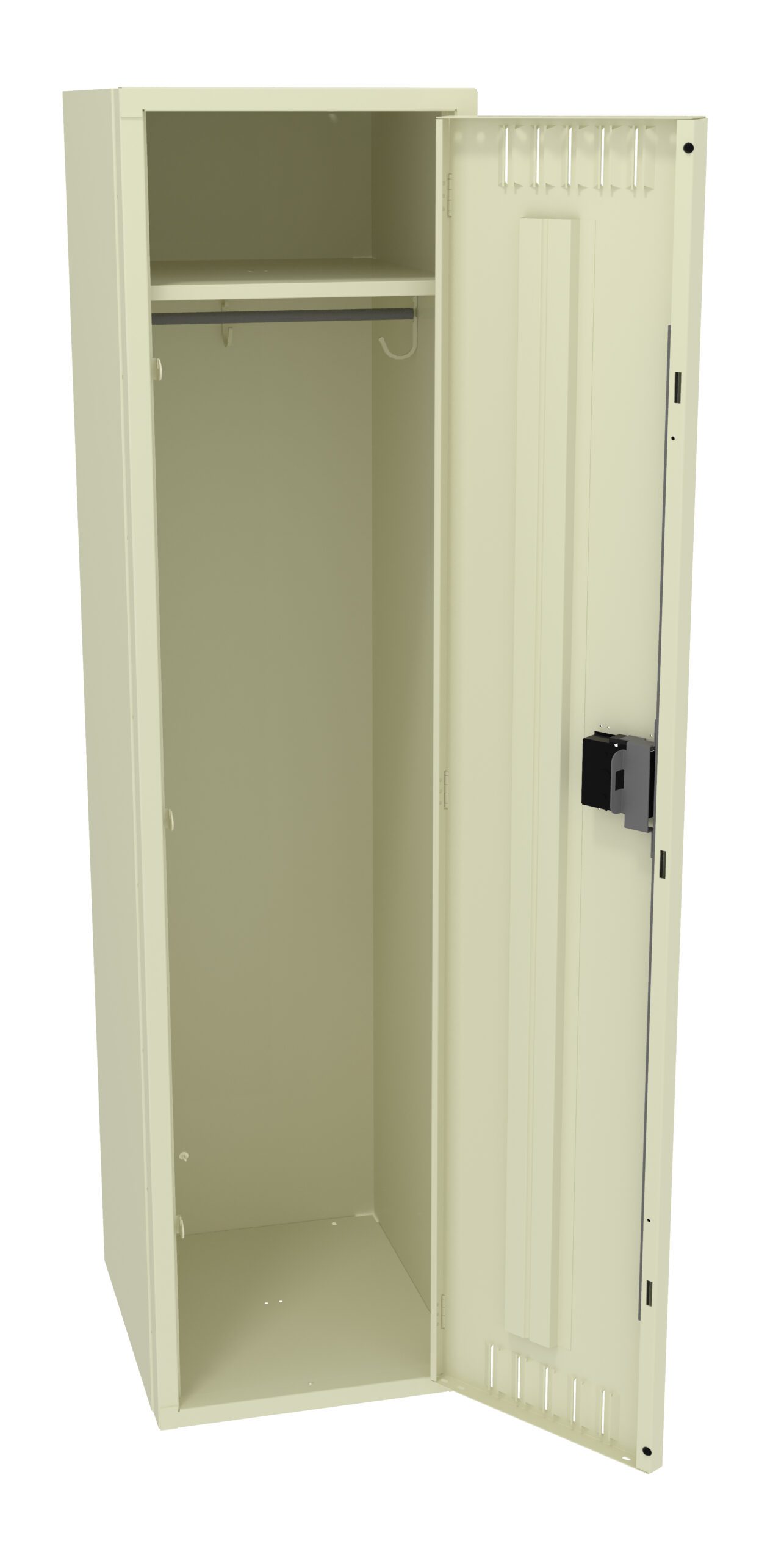 Single Tier Lockers are our most popular general purpose locker, ideal for factories, schools, hospitals. Three coat hooks per opening. Positive 3 point locking system on doors. Flush louvers for ventilation. Door stiffeners add rigidity.