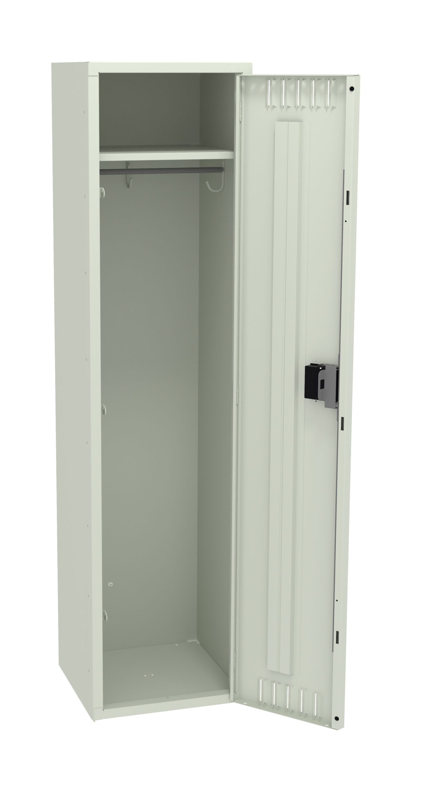 Single Tier Lockers are our most popular general purpose locker, ideal for factories, schools, hospitals. Three coat hooks per opening. Positive 3 point locking system on doors. Flush louvers for ventilation. Door stiffeners add rigidity.