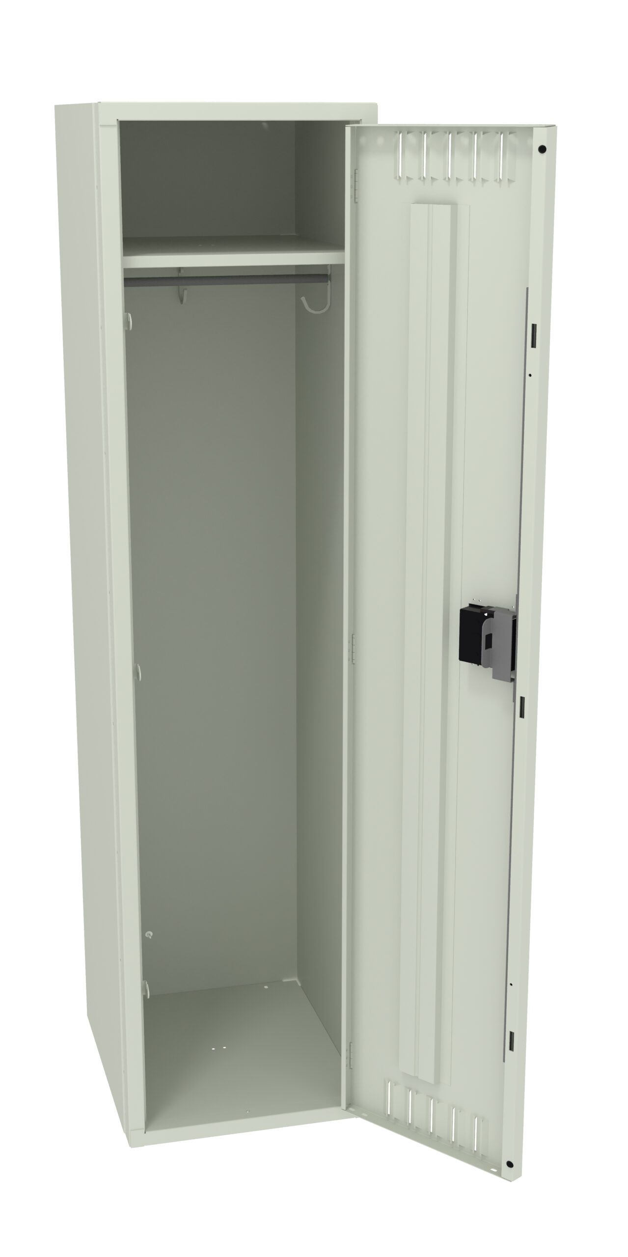 Single Tier Lockers are our most popular general purpose locker, ideal for factories, schools, hospitals. Three coat hooks per opening. Positive 3 point locking system on doors. Flush louvers for ventilation. Door stiffeners add rigidity.